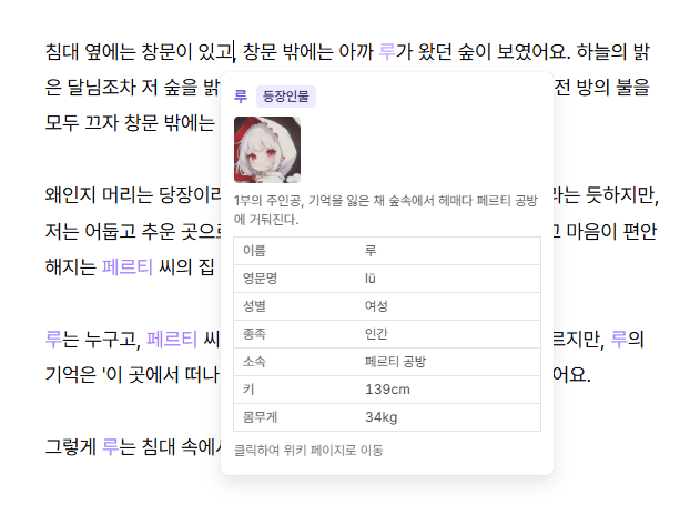 소설을 집필하면서 느낀 점은 설정이 많아질 수록 모든 것을 기억하기 어렵고, 아무리 깔끔하게 정리하더라도 매번 설정 문서를 찾으러 가는 과정은 집필 몰입감을 훼손한다는 점이었습니다.1